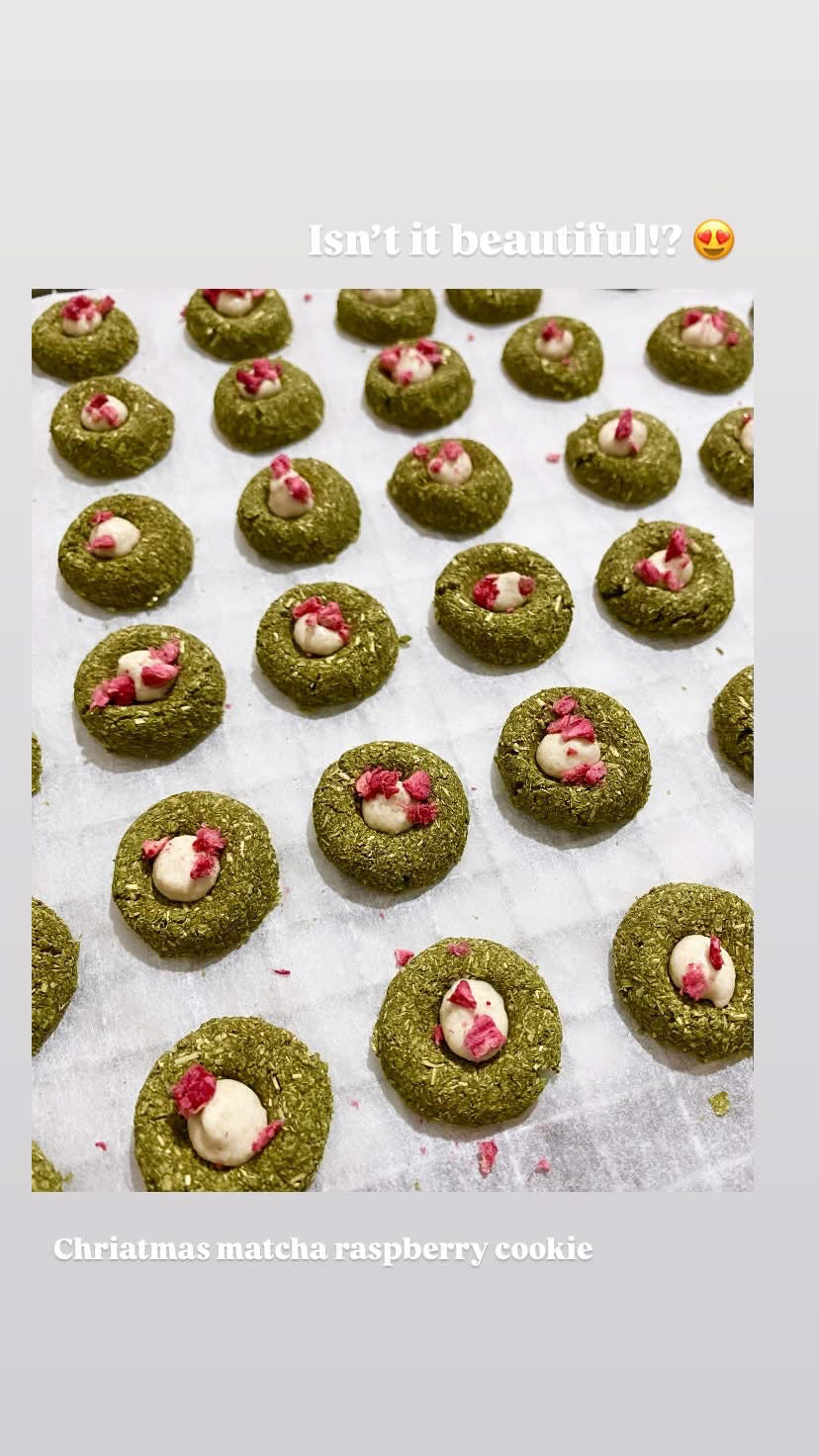 These dreamy cookies are made with a wholesome timothy hay and rolled oats base, finished with a little drop of oaten cream and a sprinkle of raspberry for that perfect pop of Christmas colour.