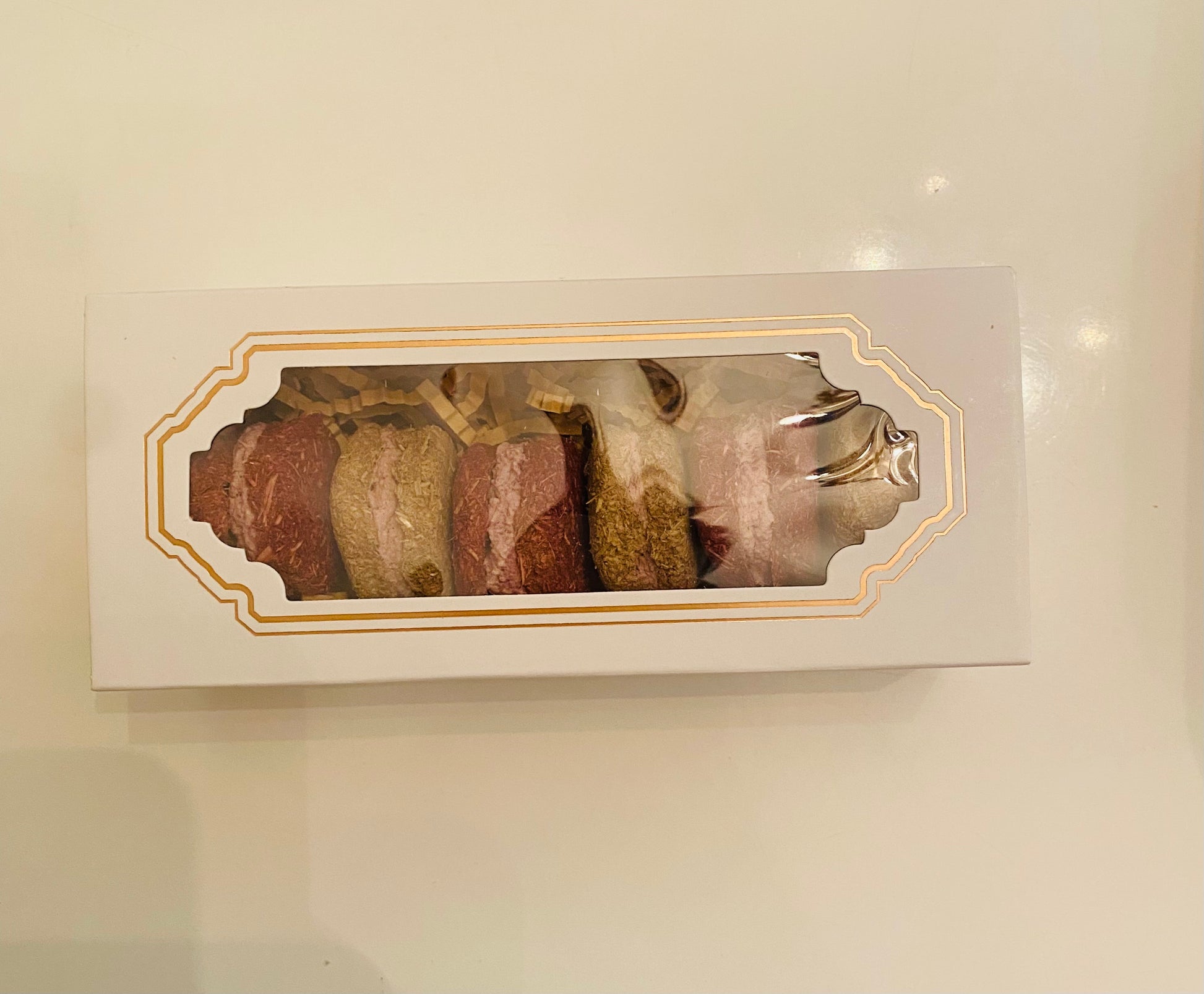Each box includes two delicious flavours — sweet strawberry 🍓 and fragrant rose 🌹 — beautifully crafted for a charming festive treat.