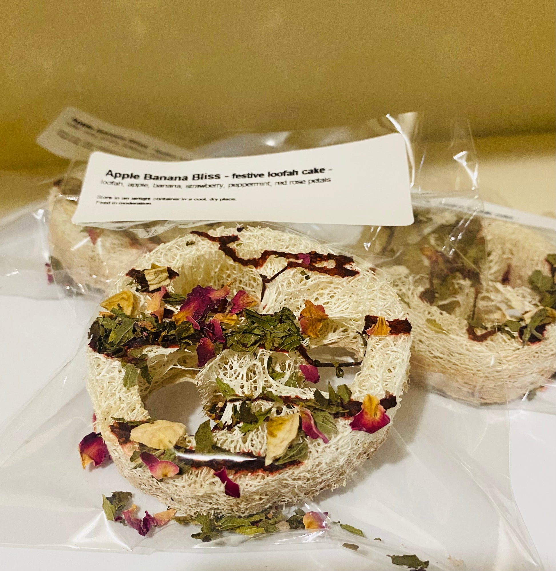 Ingredients: loofah, apple, banana, strawberry, red rose petals, peppermint